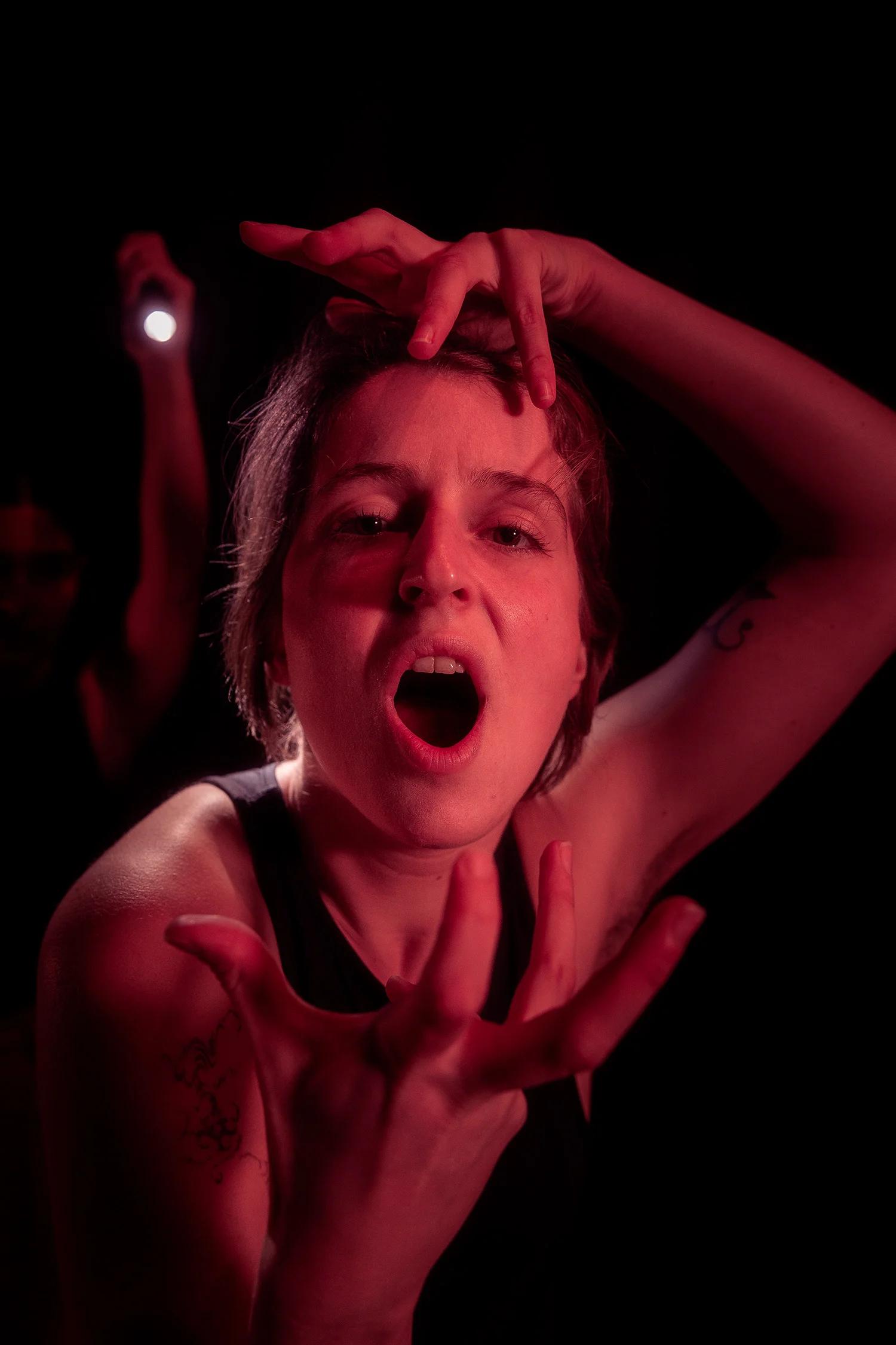 DIRECCIÓN E DRAMATURXIA AN GONZÁLEZ ELENCO ANDREA MASEDA · ESTRELLA TOMÉ · ALICIA LÓPEZ · ESTELA DEL RÍO · LYDIA LÓPEZ ILUMINACIÓN JORGE LÓPEZ · DYANGO PÉREZ VESTIARIO ELISA DÍAZ · FIXENÖEU ATREZO ERO VÁZQUEZ AUDIOVISUAIS ANDREA MASEDA · ORQUÍDEAS POCHAS FOTOGRAFÍA LAURA POSE · ALEJO ROMERO VOZ EN OFF MANO PARDO COLABORACIÓN TIC LUGO